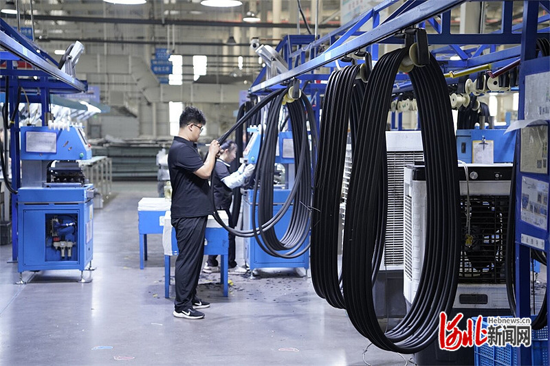 9月28日,河北永昌车辆部件科技有限公司生产车间内,工人正在密封条产线上忙碌。 河北日报记者 魏雨摄